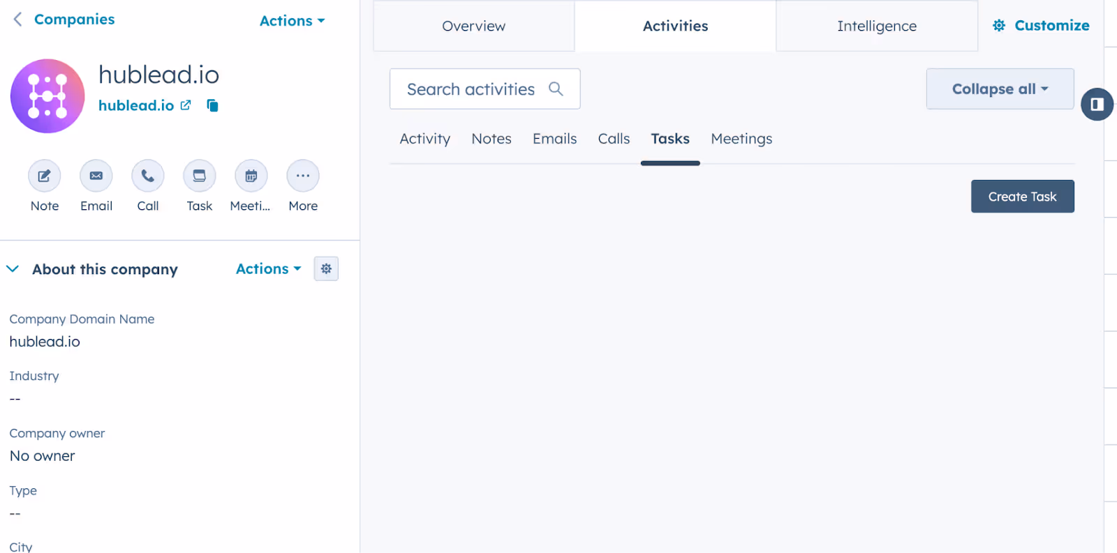 You can also create a task for any record in your CRM. Just head to the Contact/Company/Deal record you want the task associated with and look for the Tasks section.