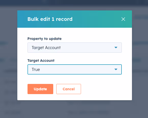 In HubSpot, you can mark companies as target accounts by updating the Target account property to True.