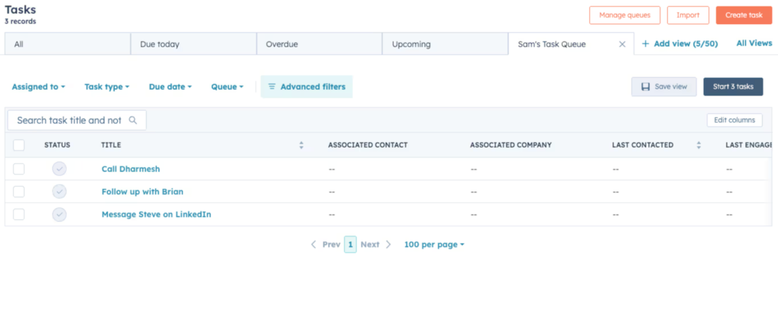 Check out my guide to using HubSpot Tasks for a complete walkthrough.