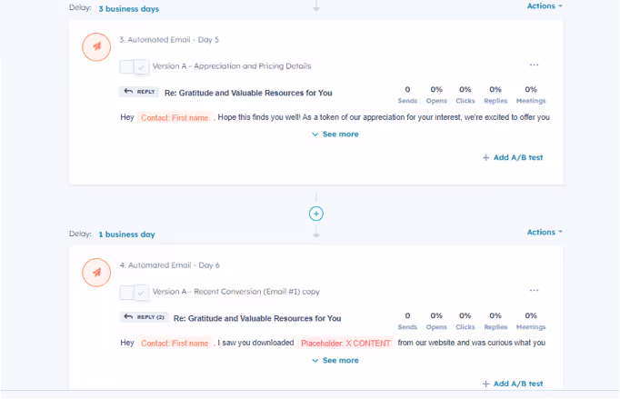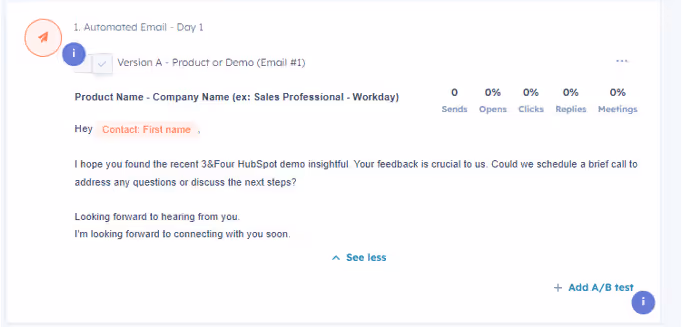 This sequence typically starts with a thank-you email from the sales reps that recaps the demo and outlines the next steps, followed by subsequent emails that provide additional resources and encourage further engagement.