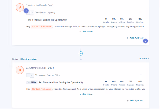 That’s where Sequences can be helpful: they allow you to send personalized emails at scale, which can significantly boost open, click-through, and conversion rates. Studies show that marketing campaigns employing email sequences generate 320% more revenue compared to those that do not use automated email approaches.
