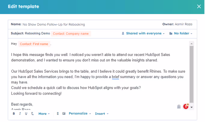 Once your prospects reply to an email or book a meeting, they are automatically unenrolled from the sequence, ensuring you don’t overstay your welcome in their inbox. Check out my quick tutorial on how to create an email template for your sequences in HubSpot: