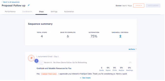 Sequences are the HubSpot CRM’s automation tool designed to send emails, create tasks, and more for each prospect you enroll.