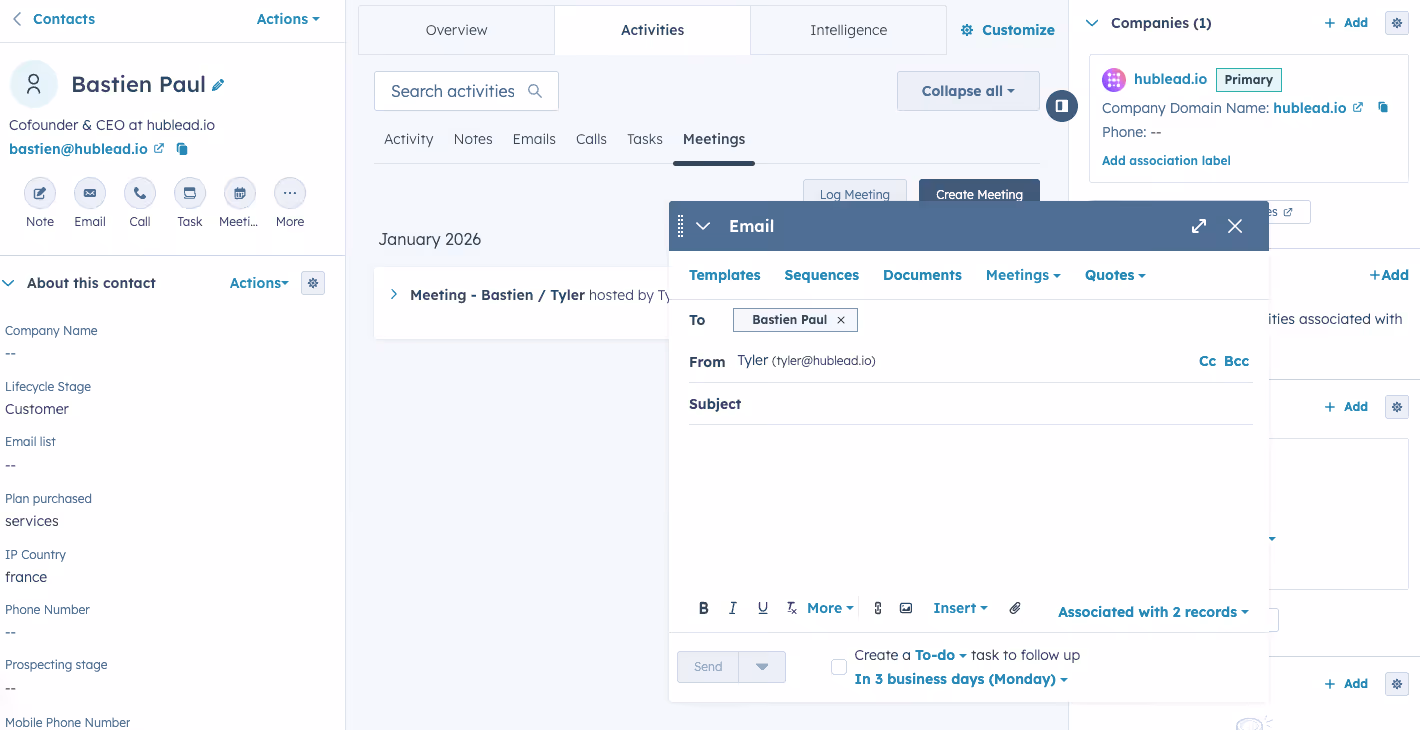 I usually send cold emails from my inbox (while logging and tracking with the HubSpot Chrome extension). Most of the time, I’ll create a template for this and either send it manually or enroll a contact in a Sequence to begin nurturing them.