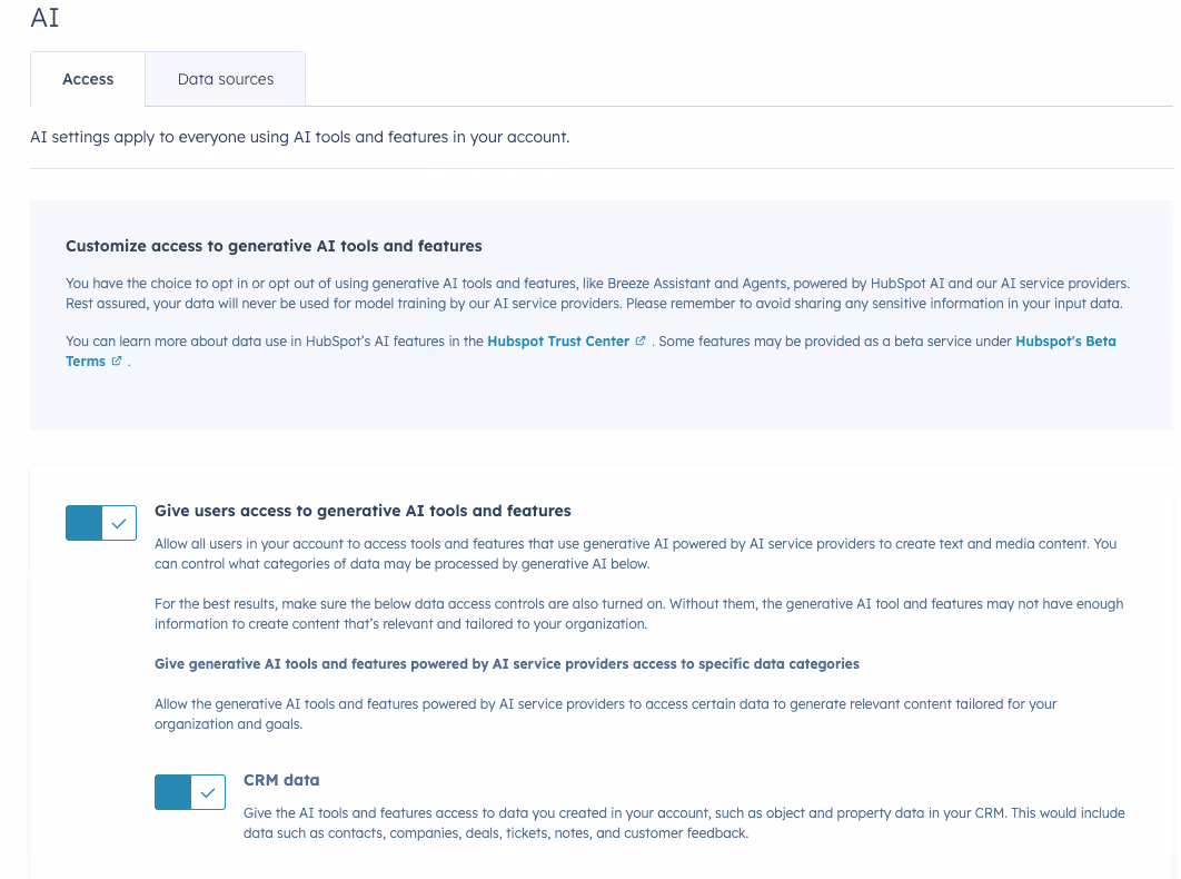 - Enable AI data sources