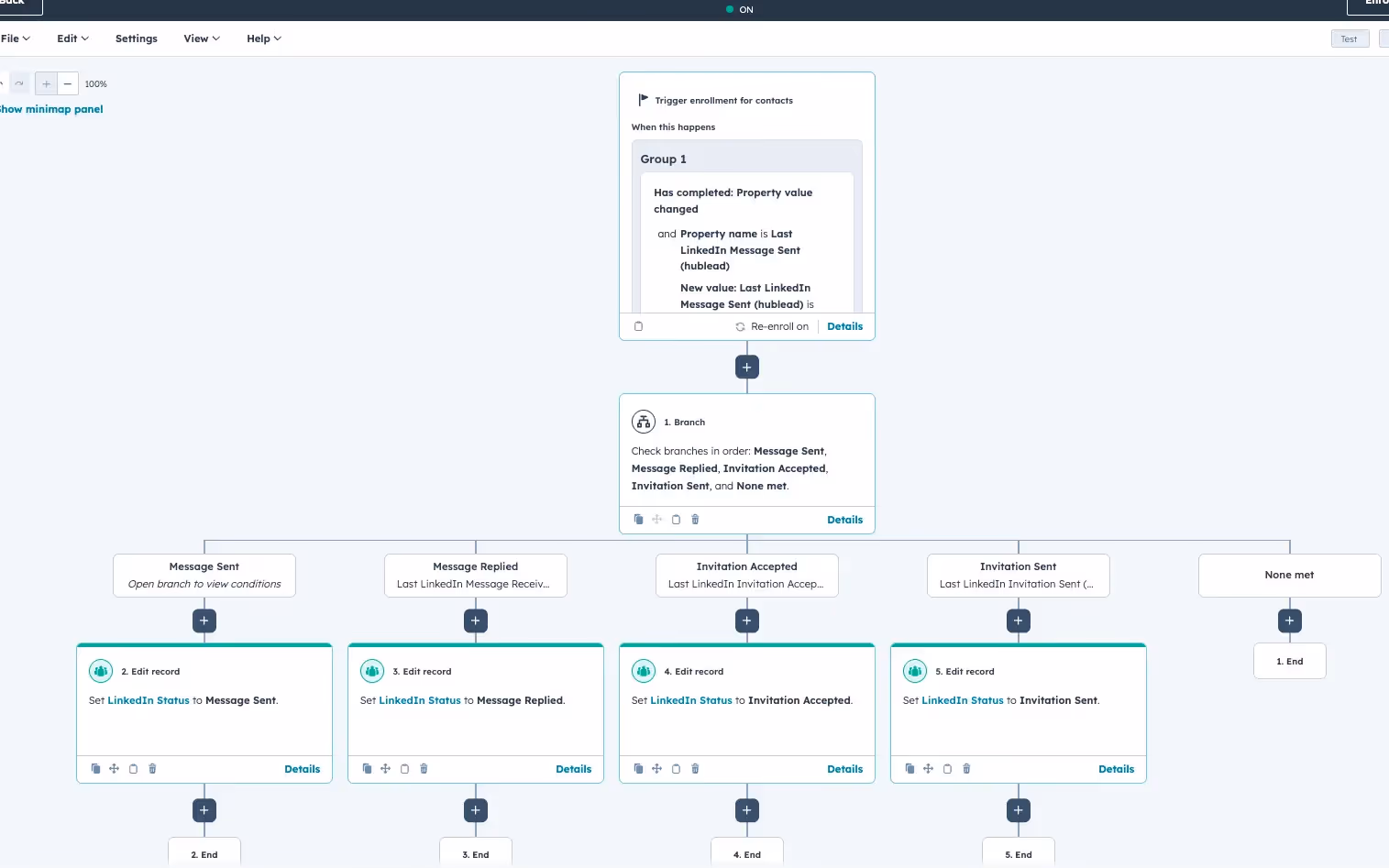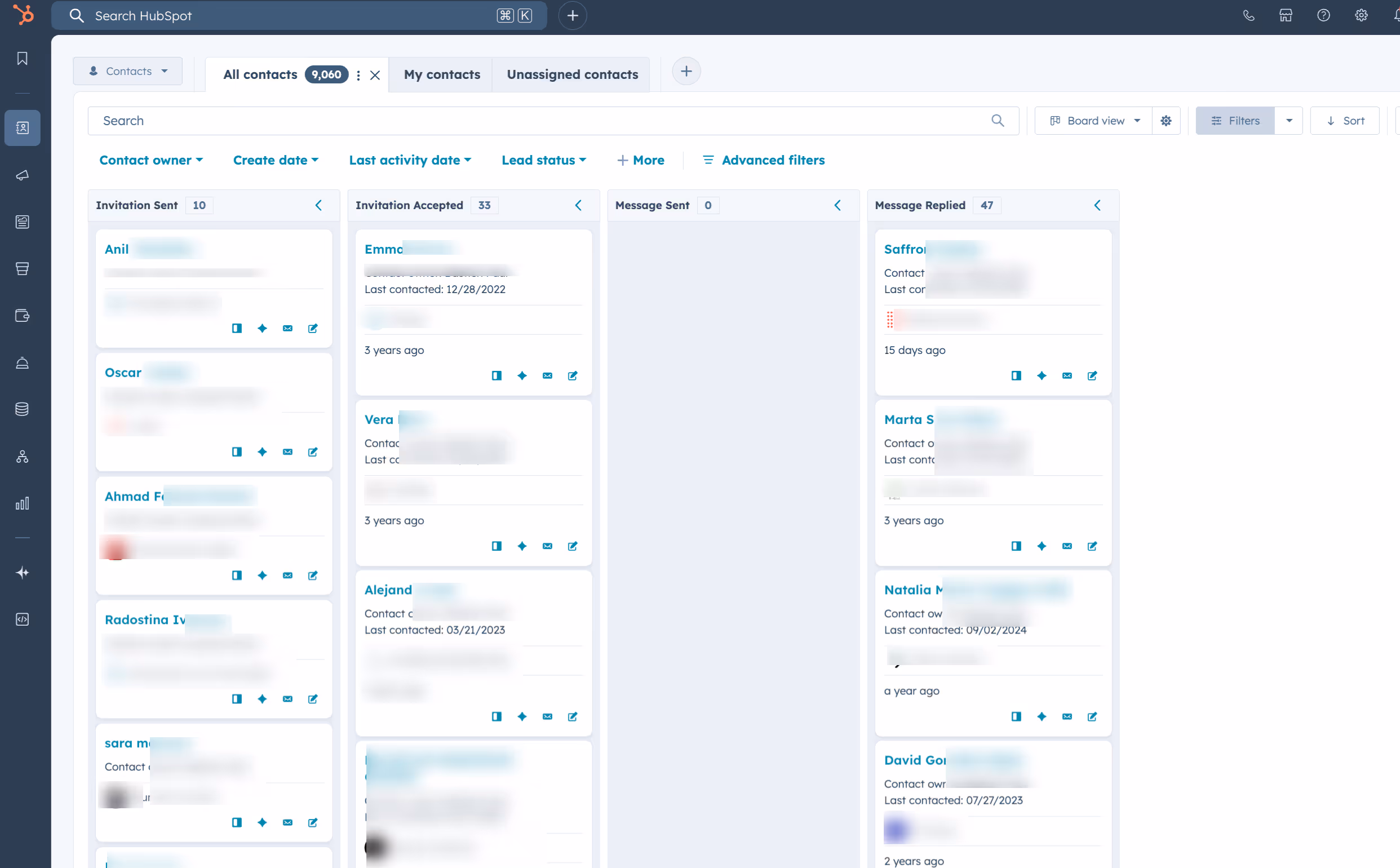 This workflow turns your Hublead actions (invitation sent, invitation accepted, message sent, message replied) into a clean Kanban board inside HubSpot. Perfect for organizing outreach, following up at the right time, and coaching your sales team.